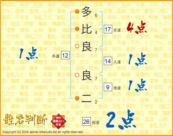 多(6画)比(4画)良(7画) 良(7画)二(2画)