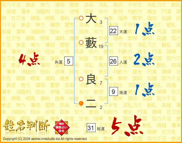 大藪良二さんの総運は31画の5点!