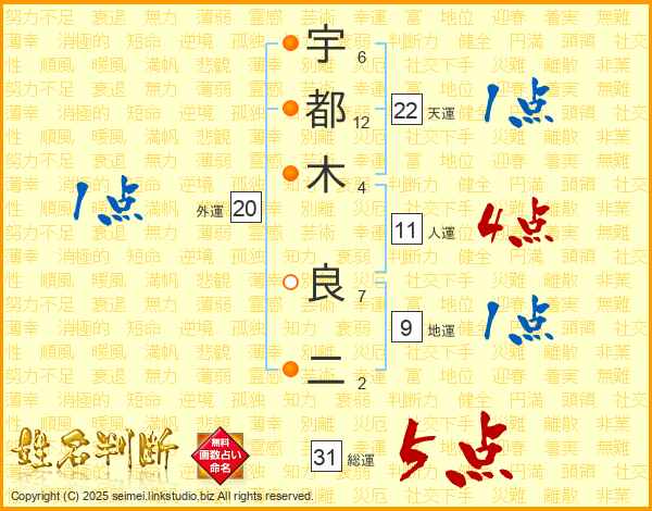 宇都木良二さんの総運は31画の5点!