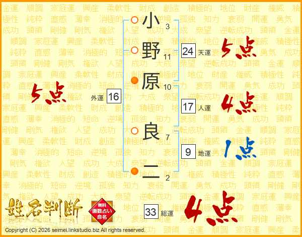 小(3画)野(11画)原(10画) 良(7画)二(2画)