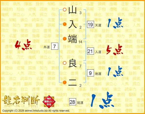 山入端良二さんの総運は28画の1点!