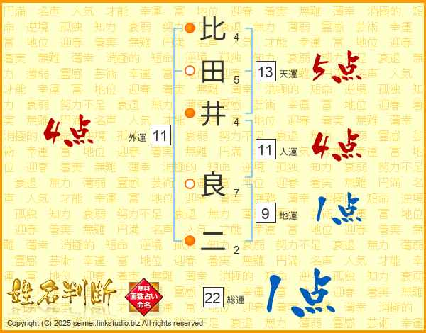 比(4画)田(5画)井(4画) 良(7画)二(2画)