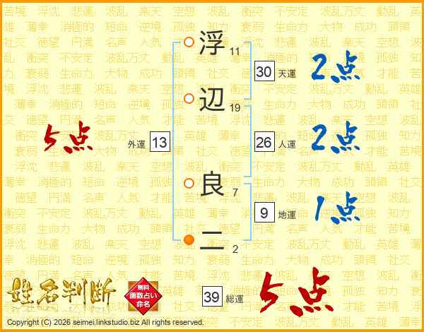 浮辺良二さんの総運は39画の5点!