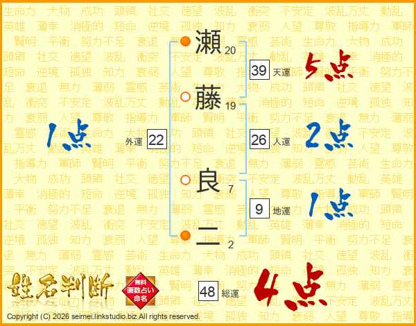 瀬藤良二さんの総運は48画の4点!
