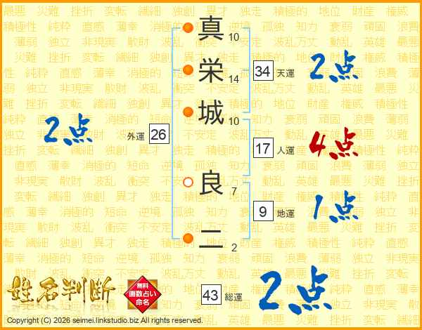 真栄城良二さんの総運は43画の2点!