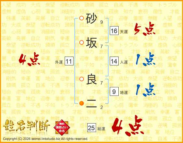 砂坂良二さんの総運は25画の4点!