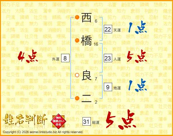 西橋良二さんの総運は31画の5点!