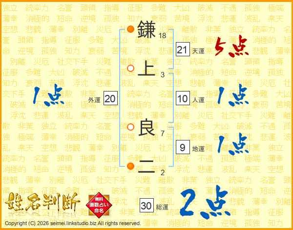 鎌上良二さんの天運は21画の5点!