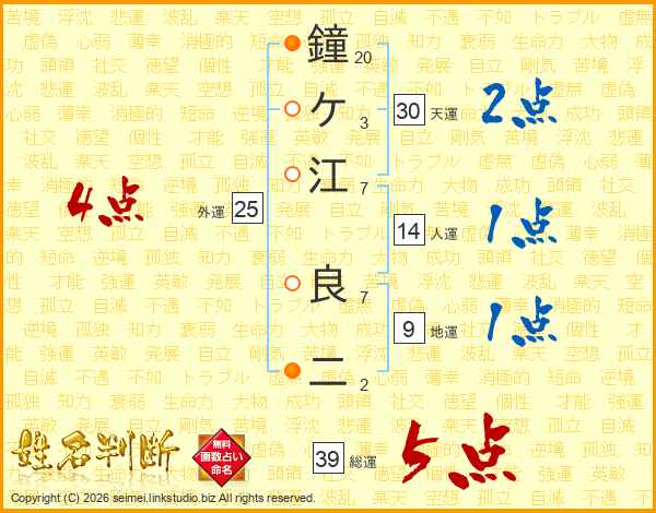 鐘ケ江良二さんの総運は39画の5点!