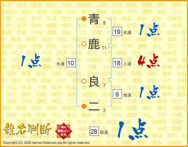 青鹿良二さんの総運は28画の1点!