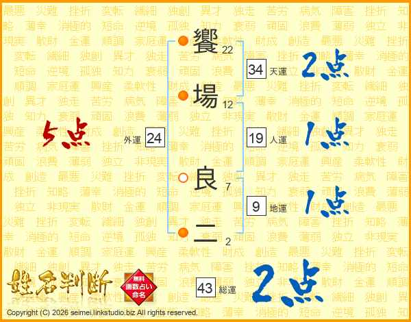 饗場良二さんの総運は43画の2点!