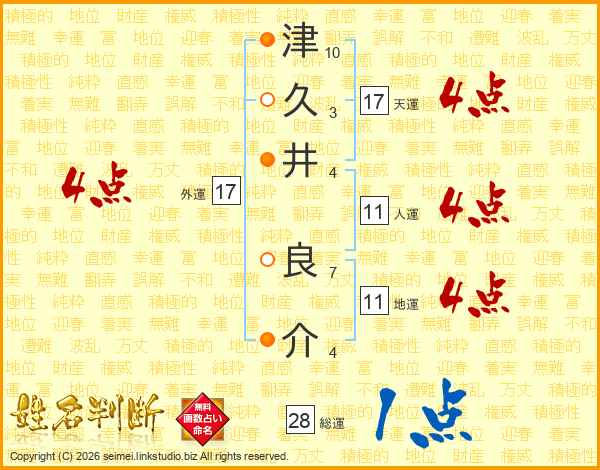 津久井良介さんの天運は17画の4点!