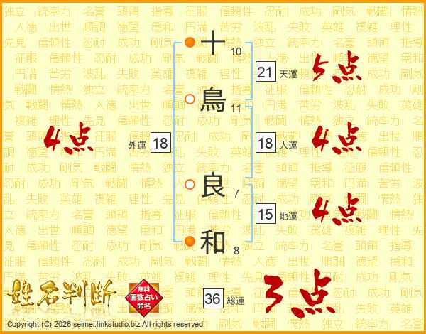 十鳥良和さんの総運は36画の3点!