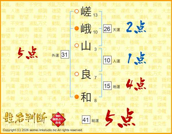 嵯峨山良和さんの総運は41画の5点!