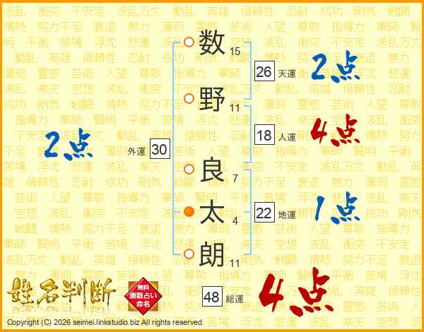 数野良太朗さんの総運は48画の4点!