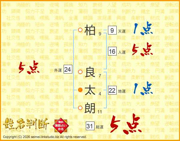 柏良太朗さんの総運は31画の5点!