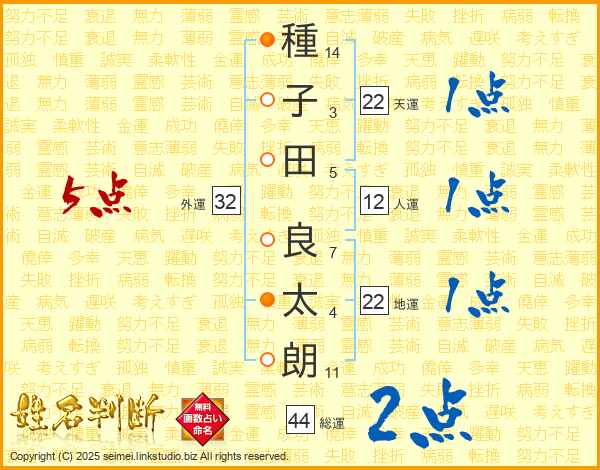 種子田良太朗さんの総運は44画の2点!