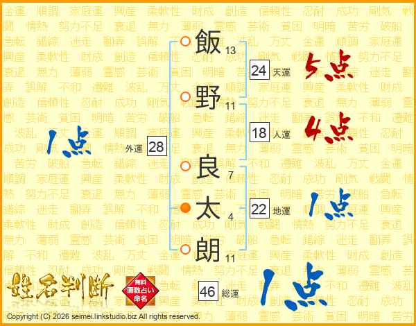 飯野良太朗さんの総運は46画の1点!