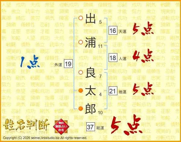 出浦良太郎さんの総運は37画の5点!