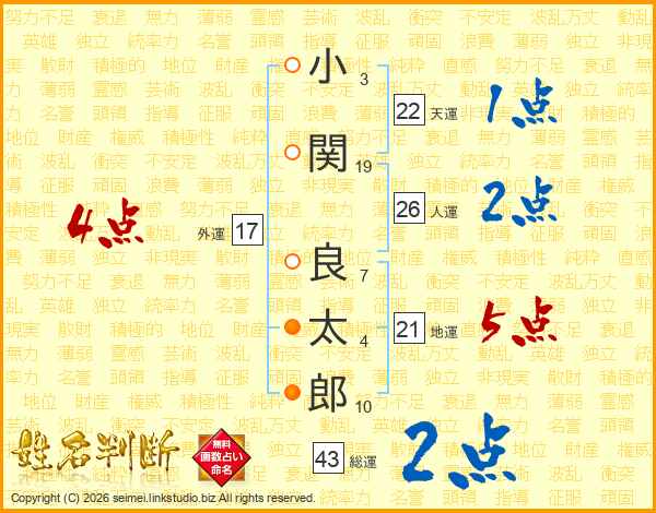 小関良太郎さんの人運は26画の2点!