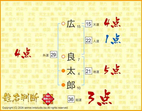広良太郎さんの総運は36画の3点!