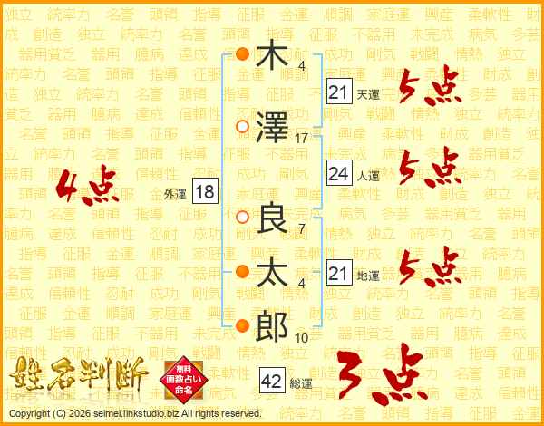 木(4画)澤(17画) 良(7画)太(4画)郎(10画)