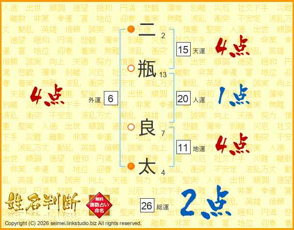二瓶良太さんの総運は26画の2点!