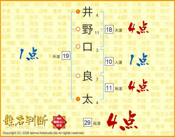 井野口良太さんの総運は29画の4点!