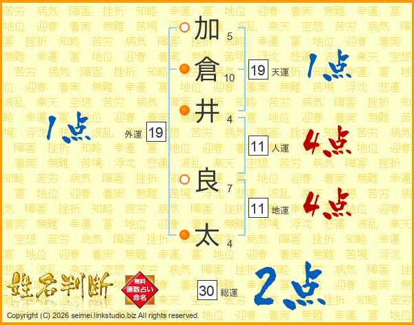 加倉井良太さんの人運は11画の4点!
