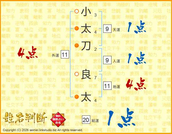 小(3画)太(4画)刀(2画) 良(7画)太(4画)