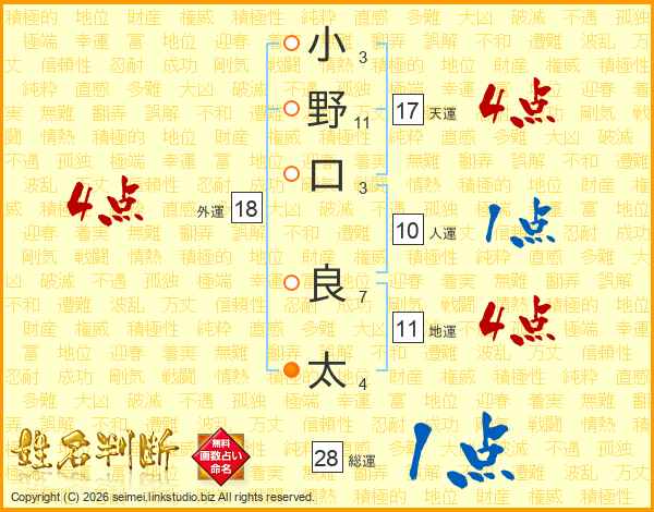 小(3画)野(11画)口(3画) 良(7画)太(4画)