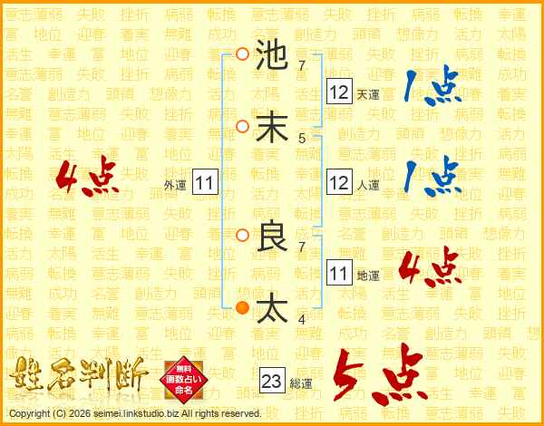 池(7画)末(5画) 良(7画)太(4画)