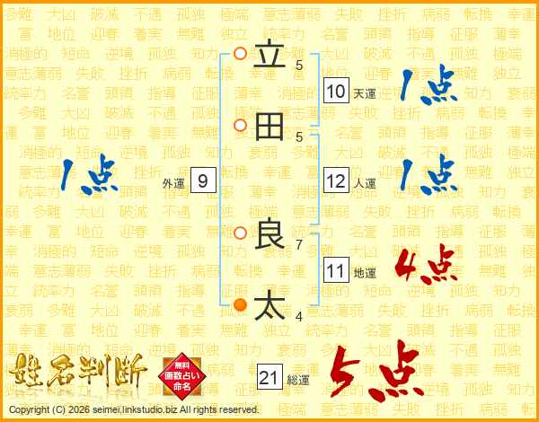 立田良太さんの総運は21画の5点!