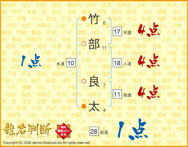 竹部良太さんの総運は28画の1点!