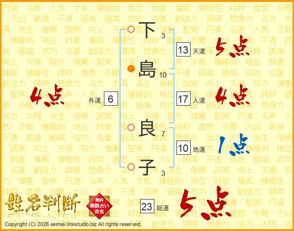 下島良子さんの総運は23画の5点!