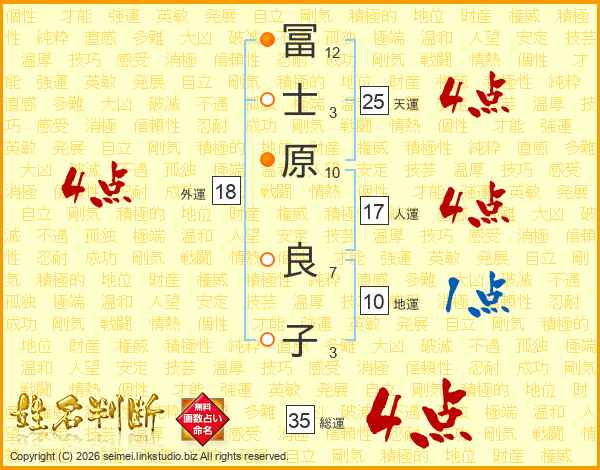 冨(12画)士(3画)原(10画) 良(7画)子(3画)