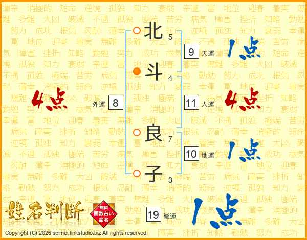 北(5画)斗(4画) 良(7画)子(3画)