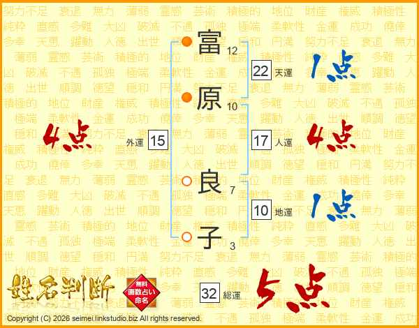 富原良子さんの総運は32画の5点!