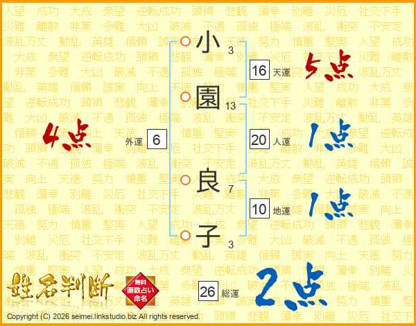 小園良子さんの総運は26画の2点!