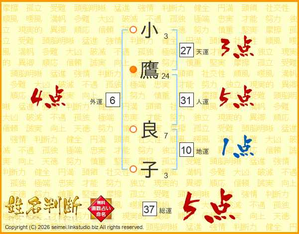 小鷹良子さんの総運は37画の5点!