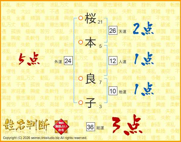 桜本良子さんの外運は24画の5点!