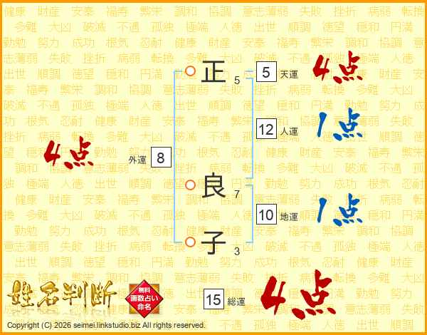正(5画)  良(7画)子(3画)