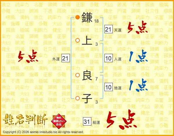 鎌上良子さんの総運は31画の5点!