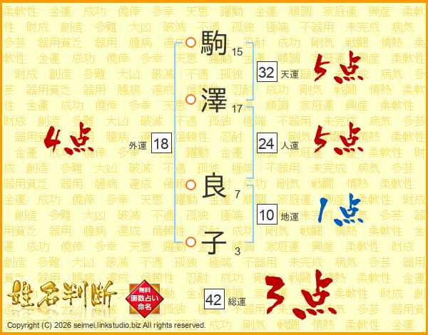 駒澤良子さんの総運は42画の3点!