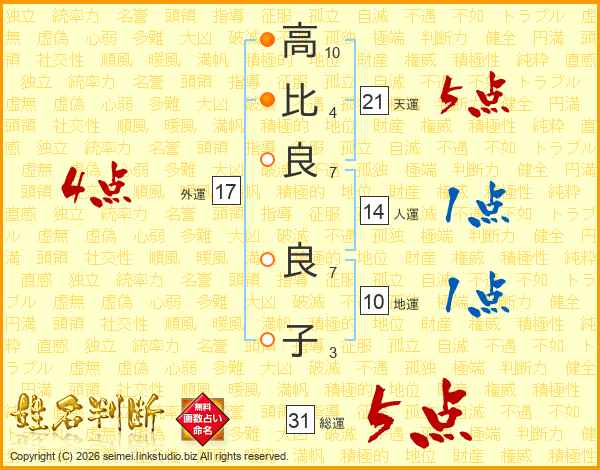 高(10画)比(4画)良(7画) 良(7画)子(3画)