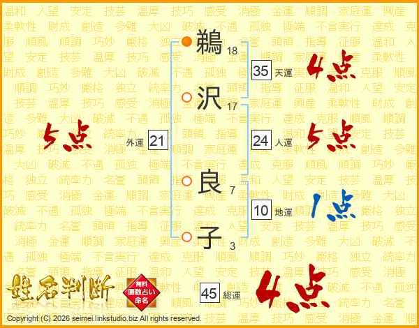 鵜沢良子さんの外運は21画の5点!