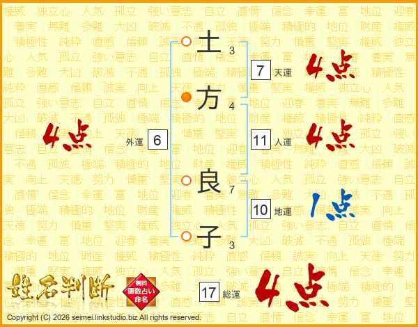 土(3画)方(4画) 良(7画)子(3画)