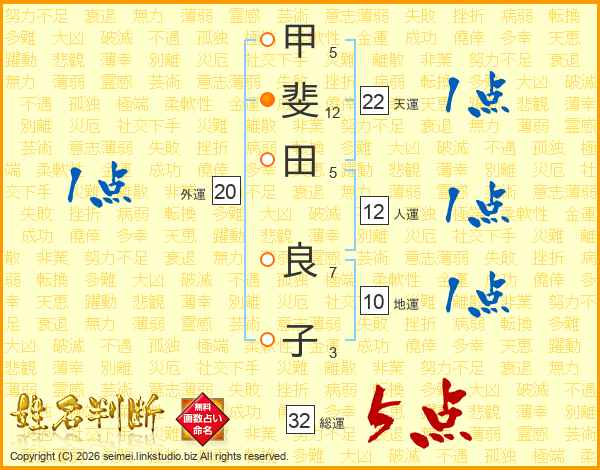 甲斐田良子さんの総運は32画の5点!