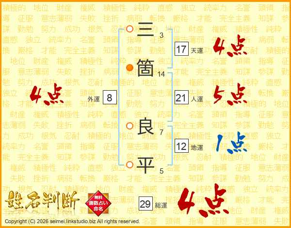 三箇良平さんの総運は29画の4点!