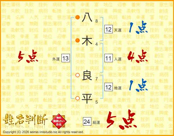 八(8画)木(4画) 良(7画)平(5画)